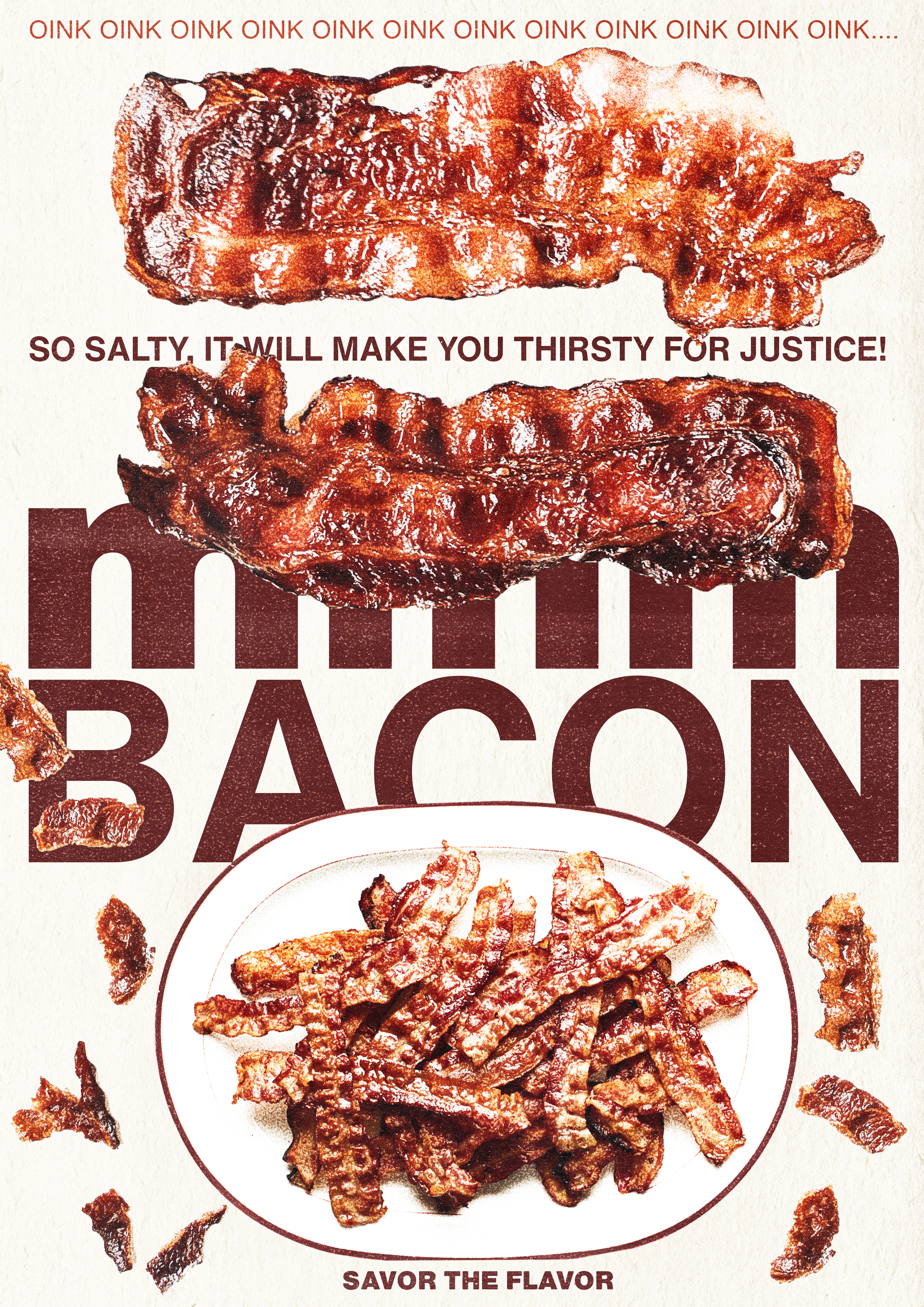 Indulge in the sizzling allure of bacon, the oink-worthy delight that awakens your senses and tantalizes your taste buds. With each crispy bite, experience the irresistible combination of smoky, savory, and salty flavors that make bacon truly unforgettable. It’s so salty, it will make you thirsty for justice, reminding you to savor not only the deliciousness but also the pursuit of a fair and equitable world. Let the aroma of perfectly cooked bacon fill the air as you savor the flavor that brings joy to breakfasts, burgers, and beyond.